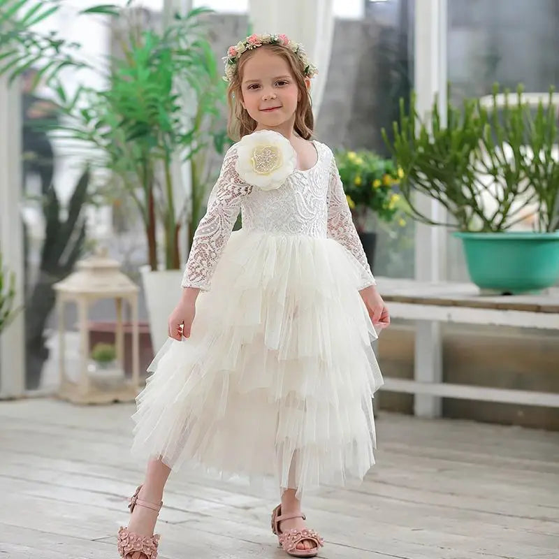 🌸 Princess Perfection: Our dresses are designed to make your little girl feel like a true princess, featuring intricate lace and tiered tulle detailing that adds an enchanting touch.